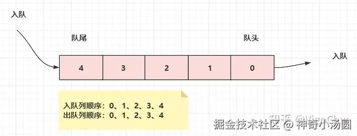 队列是一种特殊的线性表,其操作被严格限定:仅允许在一端进行数据插入,在另一端进行数据删除。它遵循先进先出(FIFO, First In First Out)的原则。其中,允许删除数据的一端称为队头,允许插入数据的一端称为队尾。