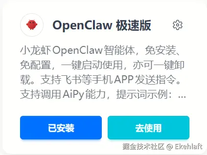 AiPy里的OpenClaw是一键安装启用的。没有复杂的配置,没有各种依赖检查,点一下就好了。卸载也很干净,完全没有残留。