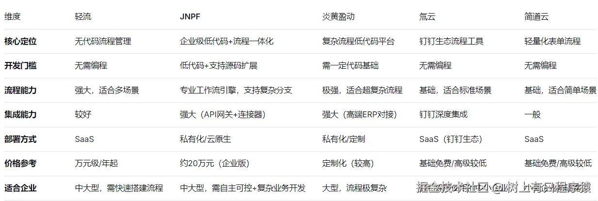在低代码技术快速成熟的背景下,JNPF快速开发平台为企业提供了“应用开发+流程管理”一体化的解决方案。与纯粹的表单流程工具不同,JNPF定位为企业级低代码开发平台,内置了专业的工作流引擎,实现了开发能力与流程管理能力的深度融合。