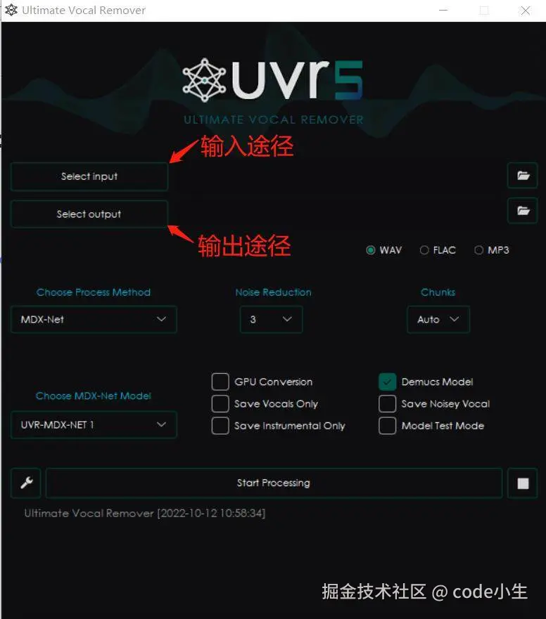 UVR 是使用最先进的分离大模型从音频文件中拆分人声和背景音乐的可视化工具!