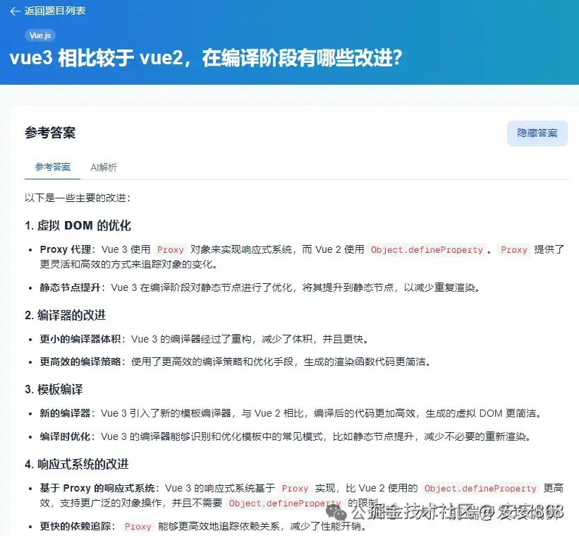 - 不再只问框架API,而是深挖“为什么” 。比如不问你Vue的响应式原理,而是问“如果在Vue 2里强行给对象添加一个根级新属性,怎么设计才能保证响应式?”。这是在考察源码思维和设计能力。
