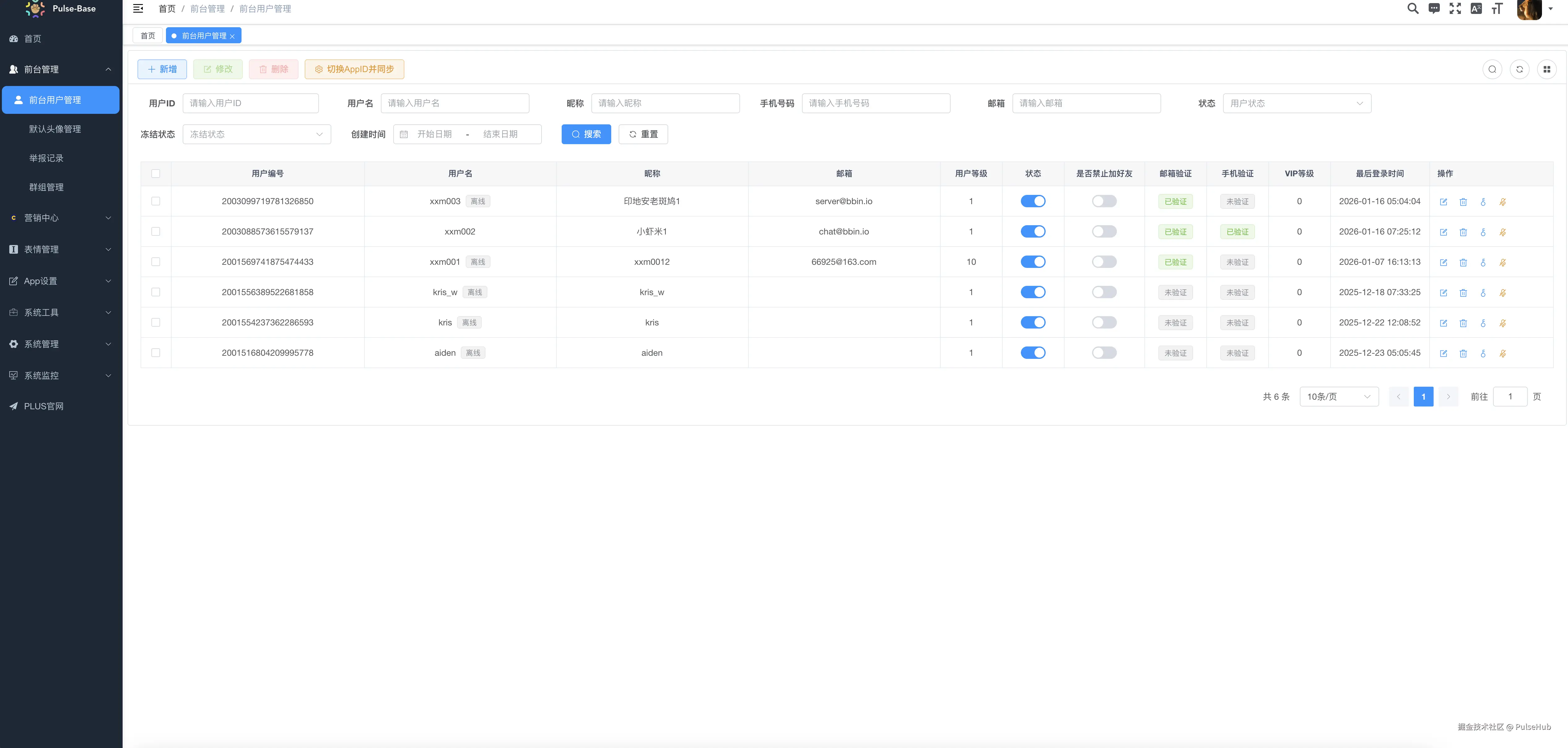 - 注册安全策略:开关注册/强制手机号/邮箱/邀请码校验,并支持「超级码系统」绕过短信邮箱限制(内测/企业专用)