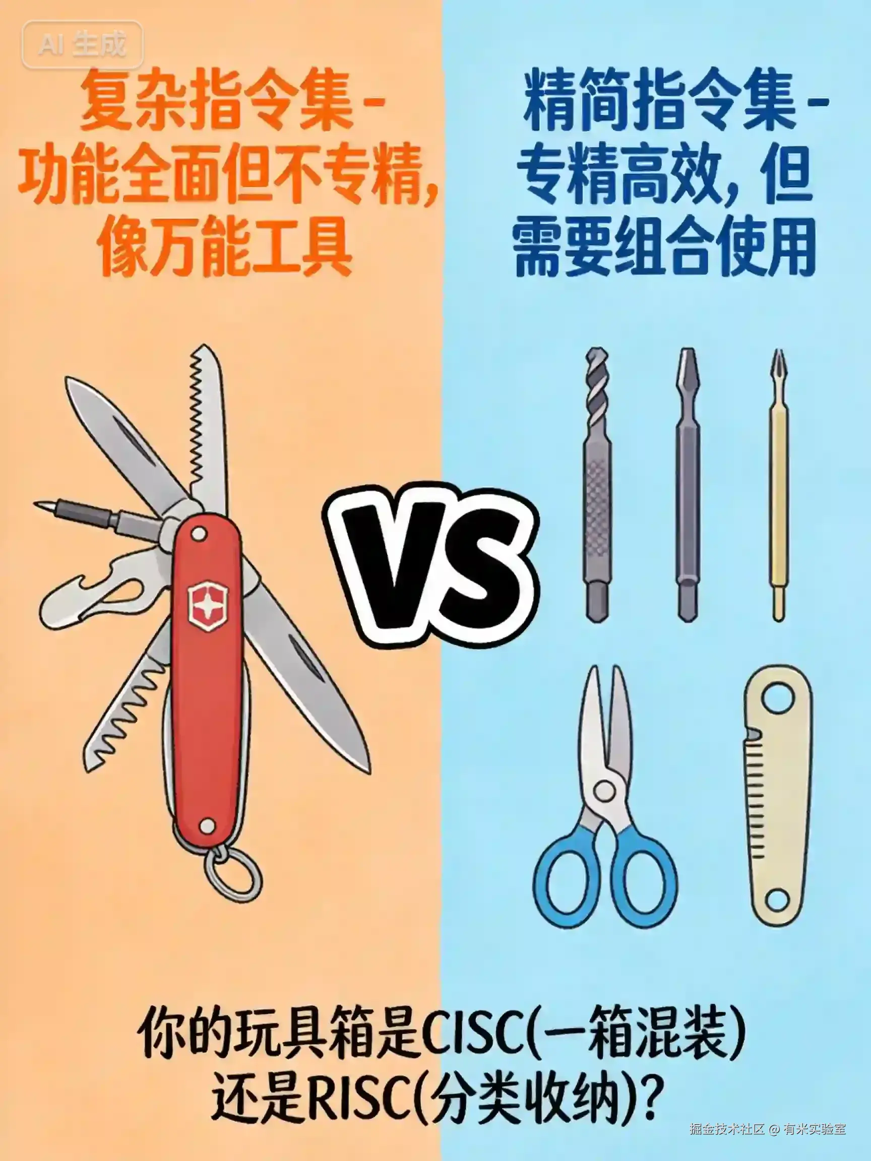 • CISC vs RISC → 瑞士军刀 vs 工具套装