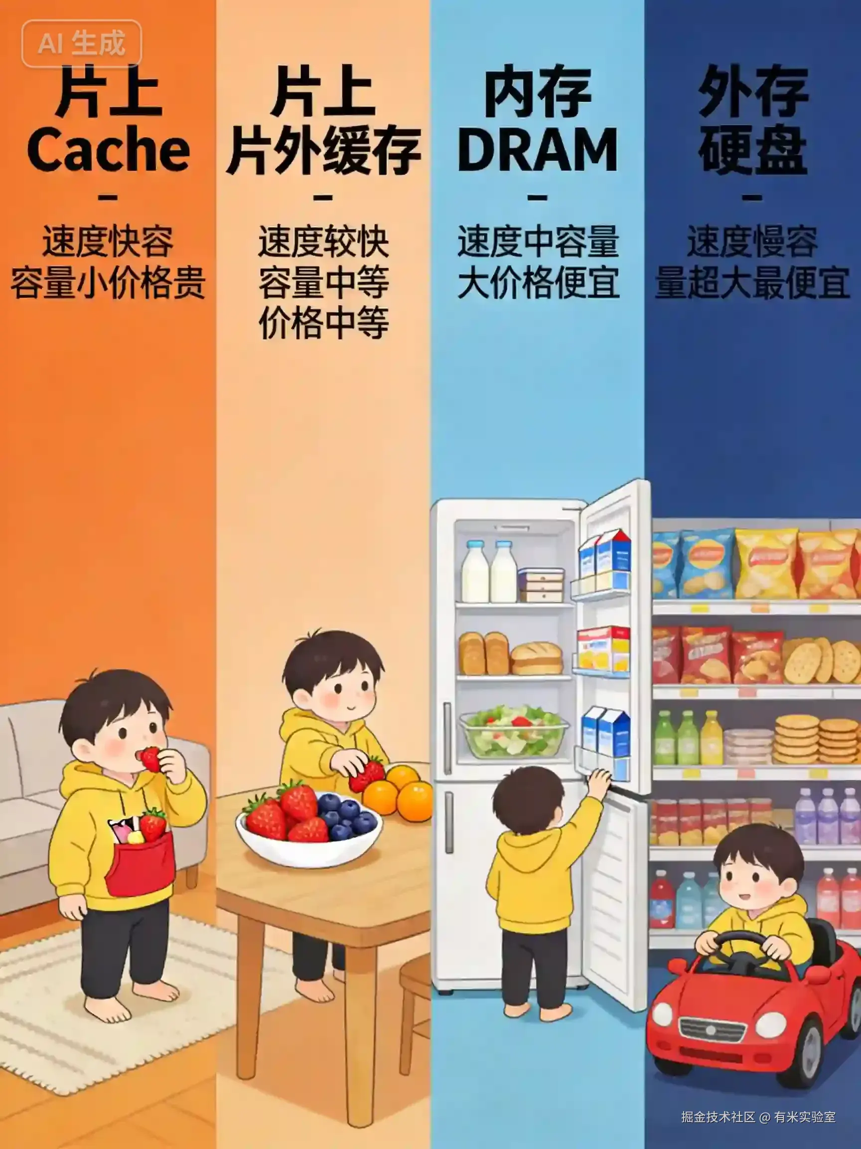 那天我在给娃讲"Cache和内存的区别",他听得一愣一愣的。