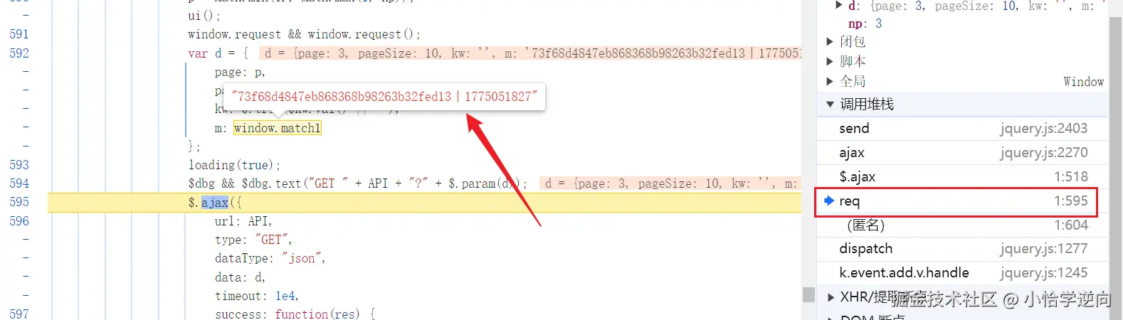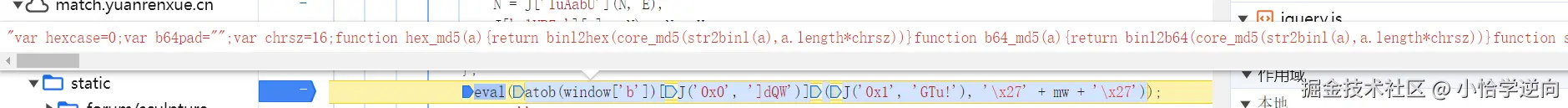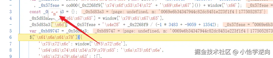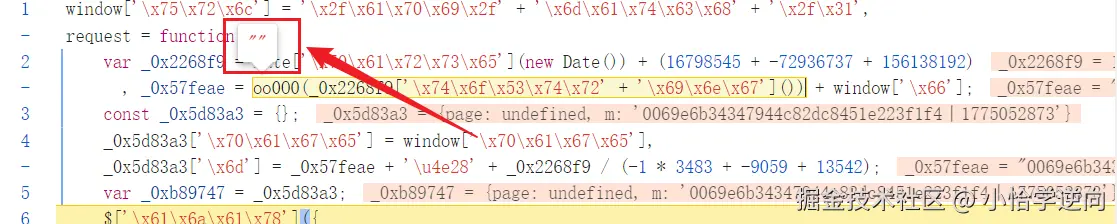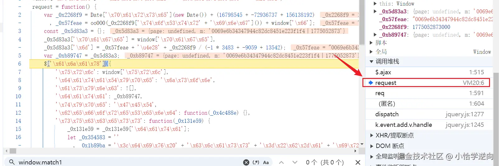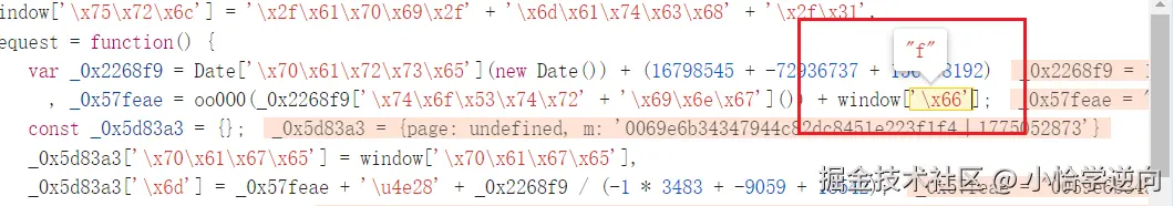 这个 window.match1 就是 m 的值,不过它是通过将 match1 这个值挂载到全局 window 再调用,这样就需要找到它的初始定义的位置,可以直接搜索 window.match1 碰碰运气