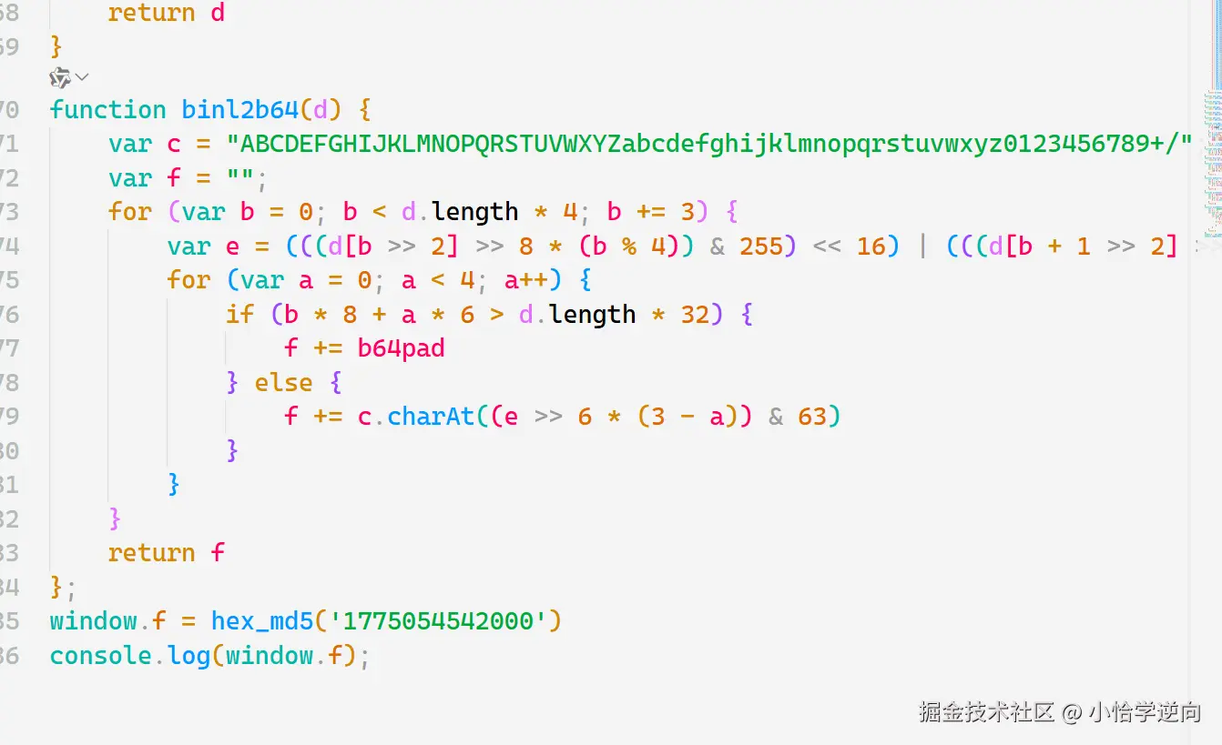 这里有两点需要注意:window 未定义、和 hex_md5 函数中的参数变化,第一个问题很简单,直接将 window = global 就行了,第二个参数其实就是我们之前的时间戳