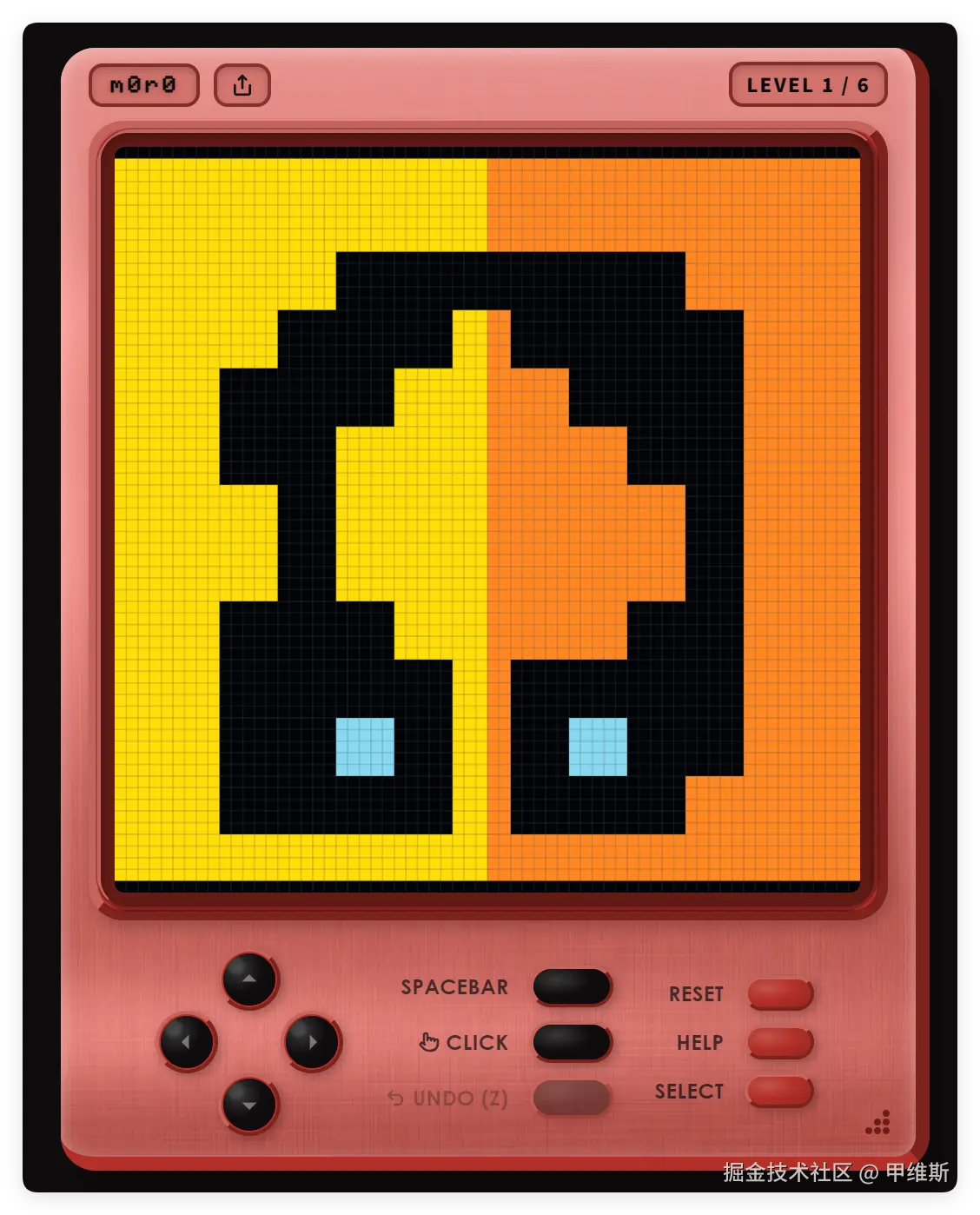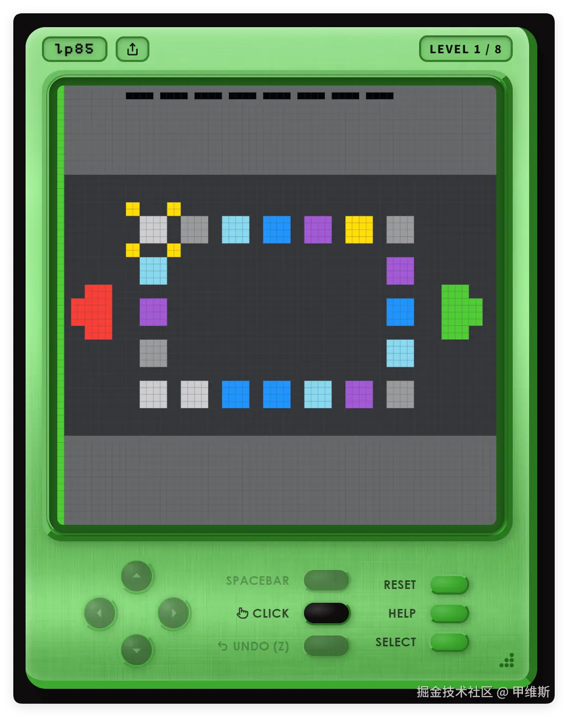 可以看到游戏的界面,能操作的就是上下左右几个按钮,然后没有任何提示和说明,全靠自己去摸索。
