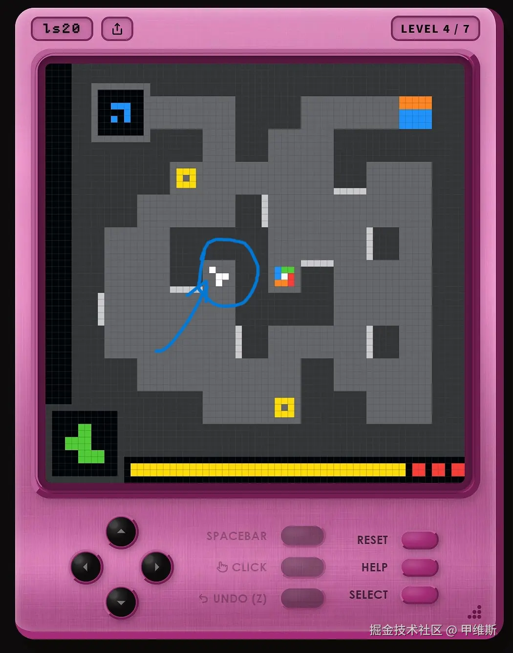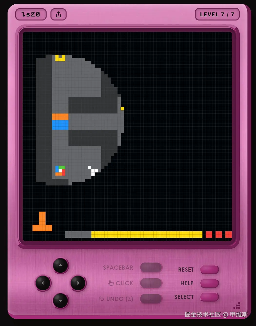我玩的是其中一个编号为 LS20 的演示题目。