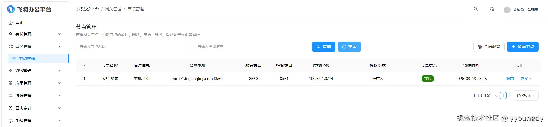 - 节点名称:用户系统备注,方便查看与管理。