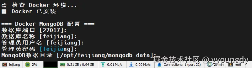 运行飞将系统的一键安装脚本,脚本内置了一键安装Dokcer的命令,我们会帮您检查Docker是否安装,如果没有安装则进行自动安装Docker
