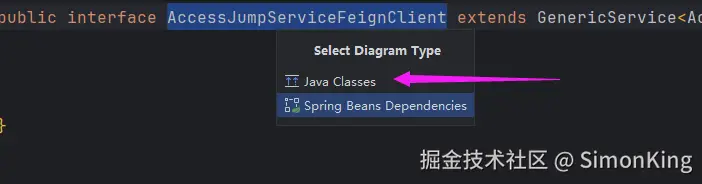 如果想要查看一个接口的实现类,可以使用diagram功能。