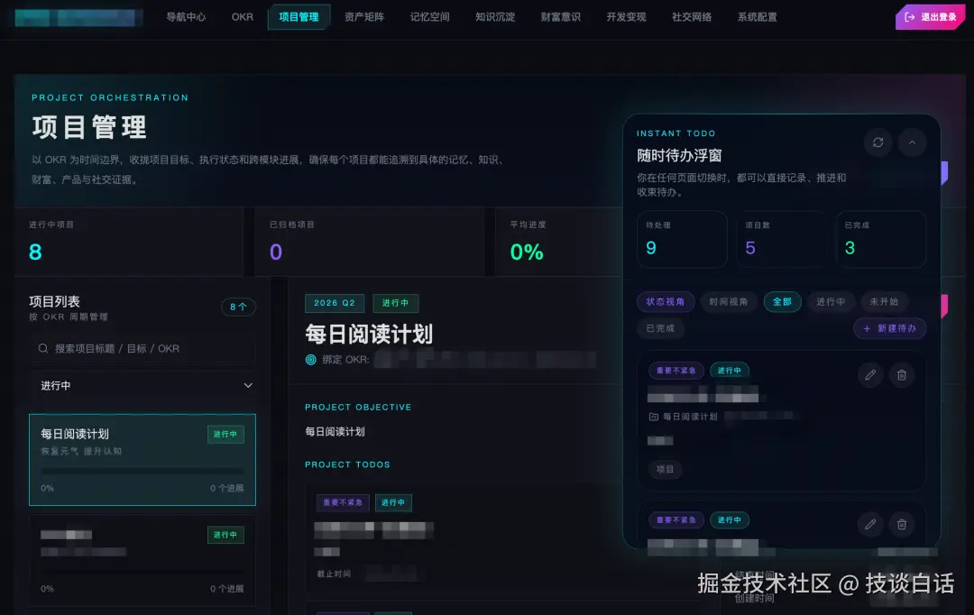 不是某个现成 SaaS 的私有部署版本,也不是某个开源项目的魔改,而是从零开始、完全为我而生的数字化领地。