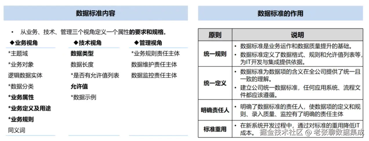 数据标准从业务、技术、管理三个视角来定义一个属性的要求和规格。