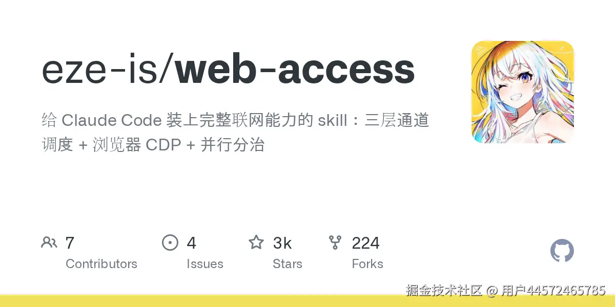 普通的联网搜索无法触达小红书、B 站或飞书内部信息,但 Web Access 彻底打破了这道墙。它通过 Chrome DevTools 直接连接你本地的浏览器进程,意味着它能带着你的登录状态去搜刮数据。