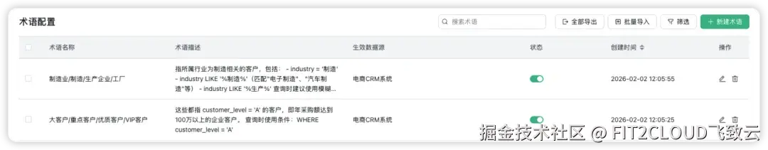 解决“业务语言”与“数据库语言”的鸿沟,让模型理解“大客户就是A级”、“制造业包含哪些行业”等问题的清晰准则;