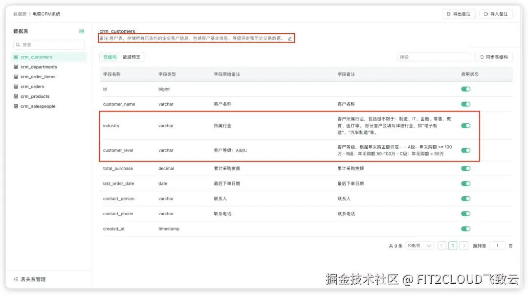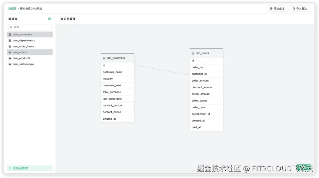 在本文中,我们将模拟一套电商CRM系统数据为例,将这套数据作为电商CRM系统数据源接入SQLBot。通过对电商CRM系统数据源及其中的数据进行SQLBot配置,展示在不同的使用场景中如何通过系统配置让AI更理解业务。