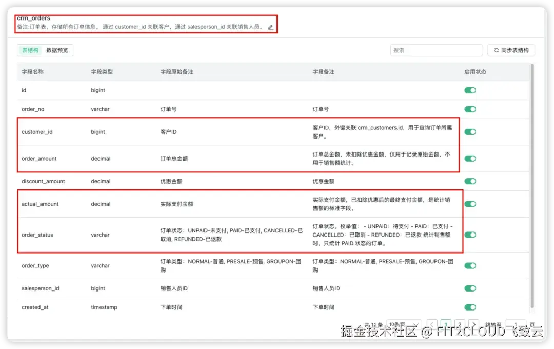 第一步:字段描述(场景1+场景2) ,让大模型理解各字段的业务含义;