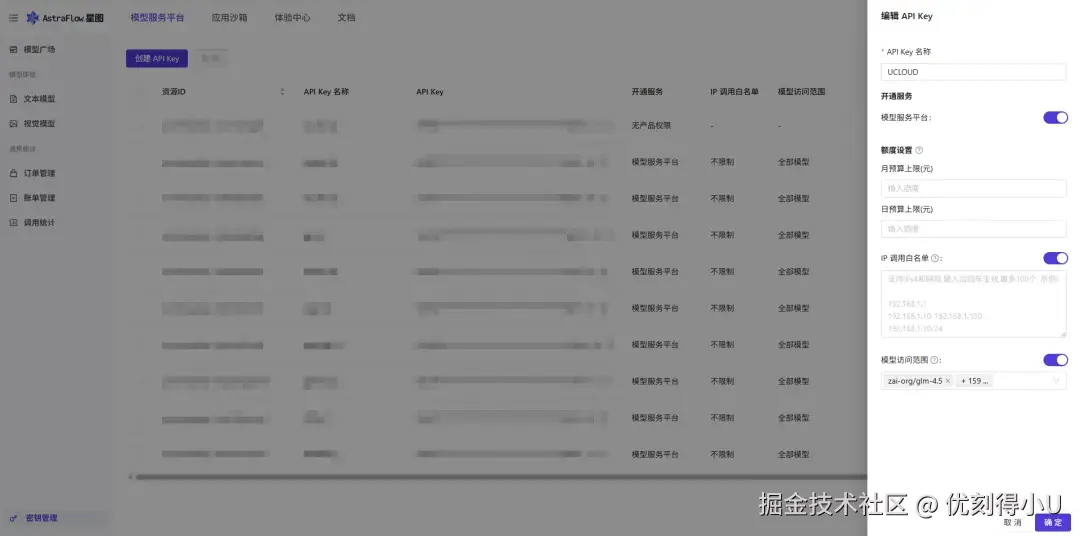 “Key 到处散落”“谁在用、用到哪、用多少”是企业落地 AI 的常见痛点。AstraFlow 星图提供企业级 API Key 管理体系,覆盖权限控制、安全与成本管理:
