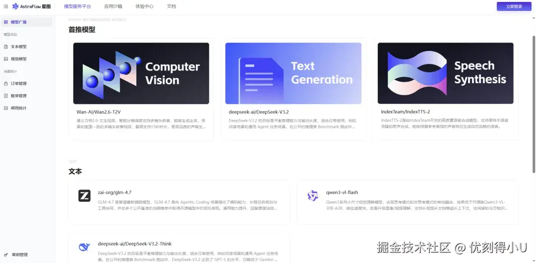 AstraFlow 星图融合了 UModelVerse 的能力,汇聚 200+ 主流大模型,覆盖: