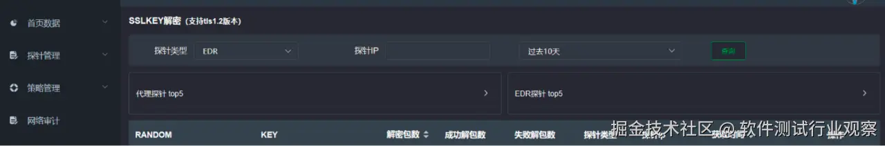 针对日益普遍的 TLS 加密流量,系统采用旁路解密技术,基于 TLS 握手过程获取会话随机数和私钥,支持对 TLS 1.1/1.2 协议中使用 GCM、CBC 等对称加密算法的流量进行解密。解密后的数据可进一步进行恶意代码检测、敏感信息识别等二次分析,有效解决了传统安全工具对加密流量 “视而不见” 的问题。