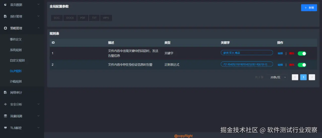 系统集成 DLP(数据泄露防护)模块,支持对网络中传输的图片、视频、JSON 文件、文本等进行还原和检测。通过敏感文件指纹匹配、内容特征分析等技术,可识别可疑数据传输行为。同时,针对恶意邮件,系统采用 AI 和大数据分析技术,检测邮件内容中的钓鱼链接、恶意附件及骗回复行为,并通过模型自学习不断优化检测性能。