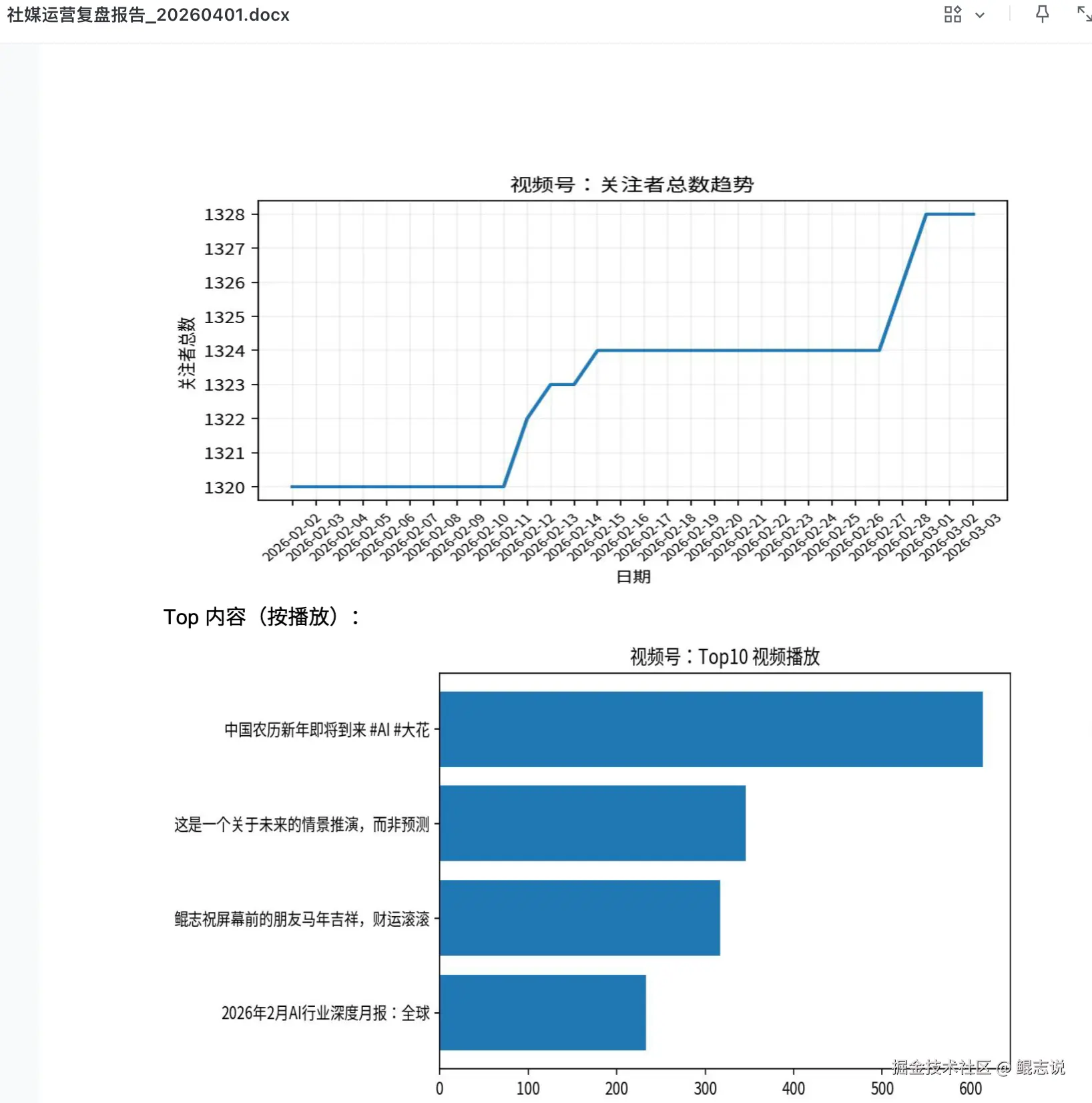 接着我们测试了活动复盘,通过给原始的运营数据,让它做清洗、可视化和复盘报告。SOLO 自动剔除了刷单数据和空值,生成了带折线图、柱状图的 Word 报告,还精准指出了运营渠道的问题,给出了优化建议。