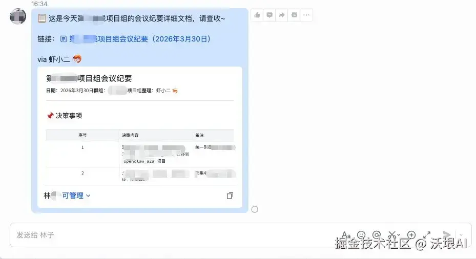 要是以前,我大概得——打开飞书、找到会议妙记、一个个翻记录、整理成文档、发出去。保守估计半小时起步。