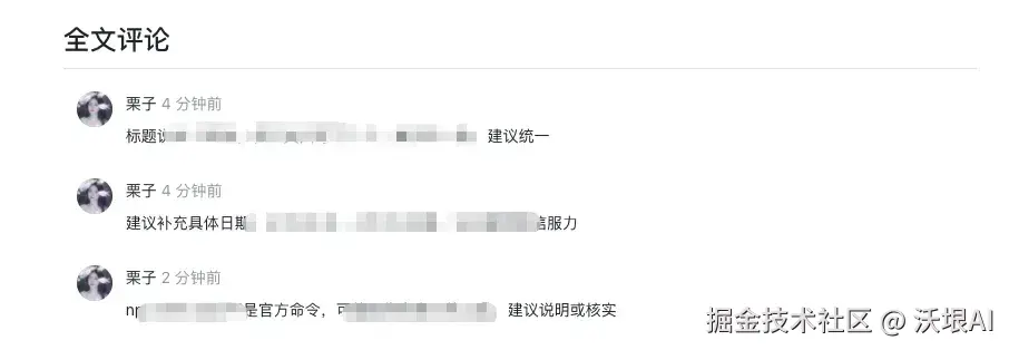 AI提完意见后,我可以在评论里回复:“这个建议不错,帮我改一下”,或者“这个不改,因为……”