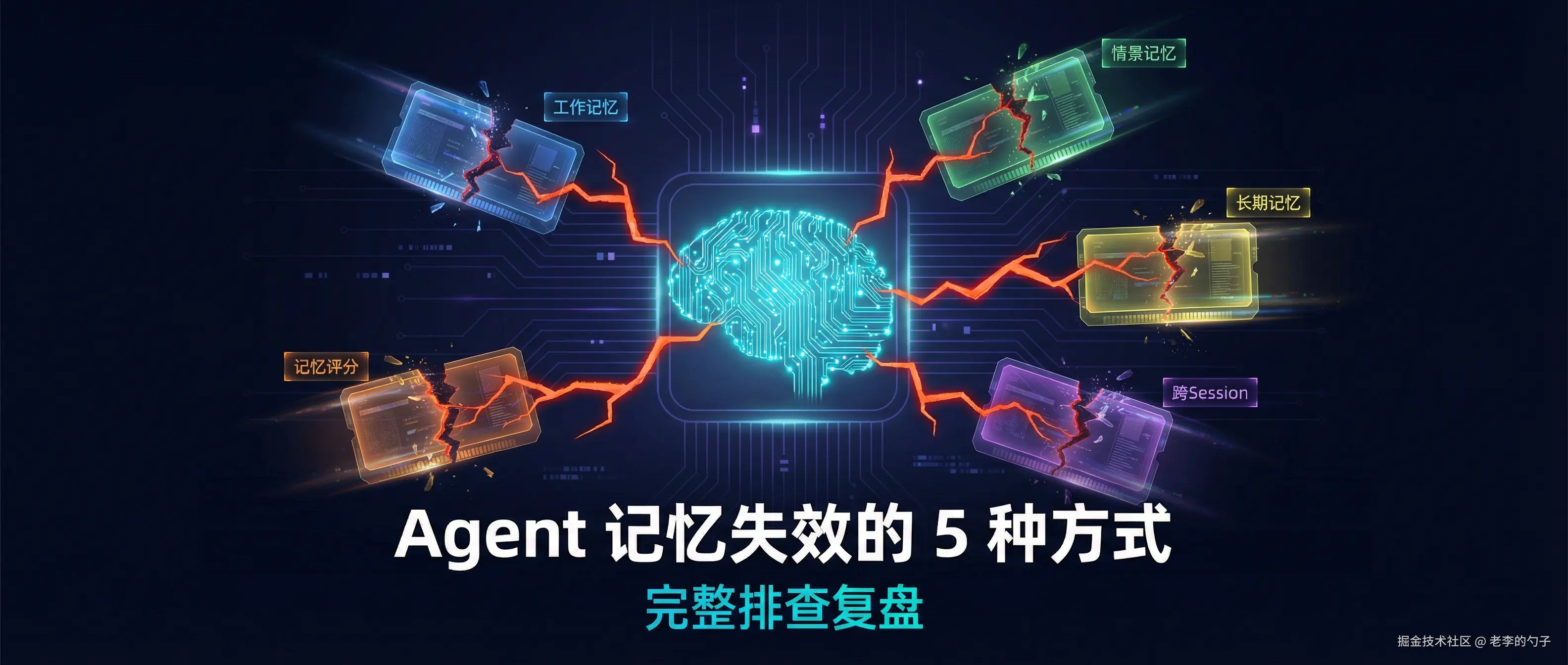 本文从工程实践出发,系统梳理 Agent 记忆失效的 5 种典型模式。每一种都有真实的故障现象、可操作的排查步骤、以及经过验证的解法。不讲故事,只讲原理和工程。