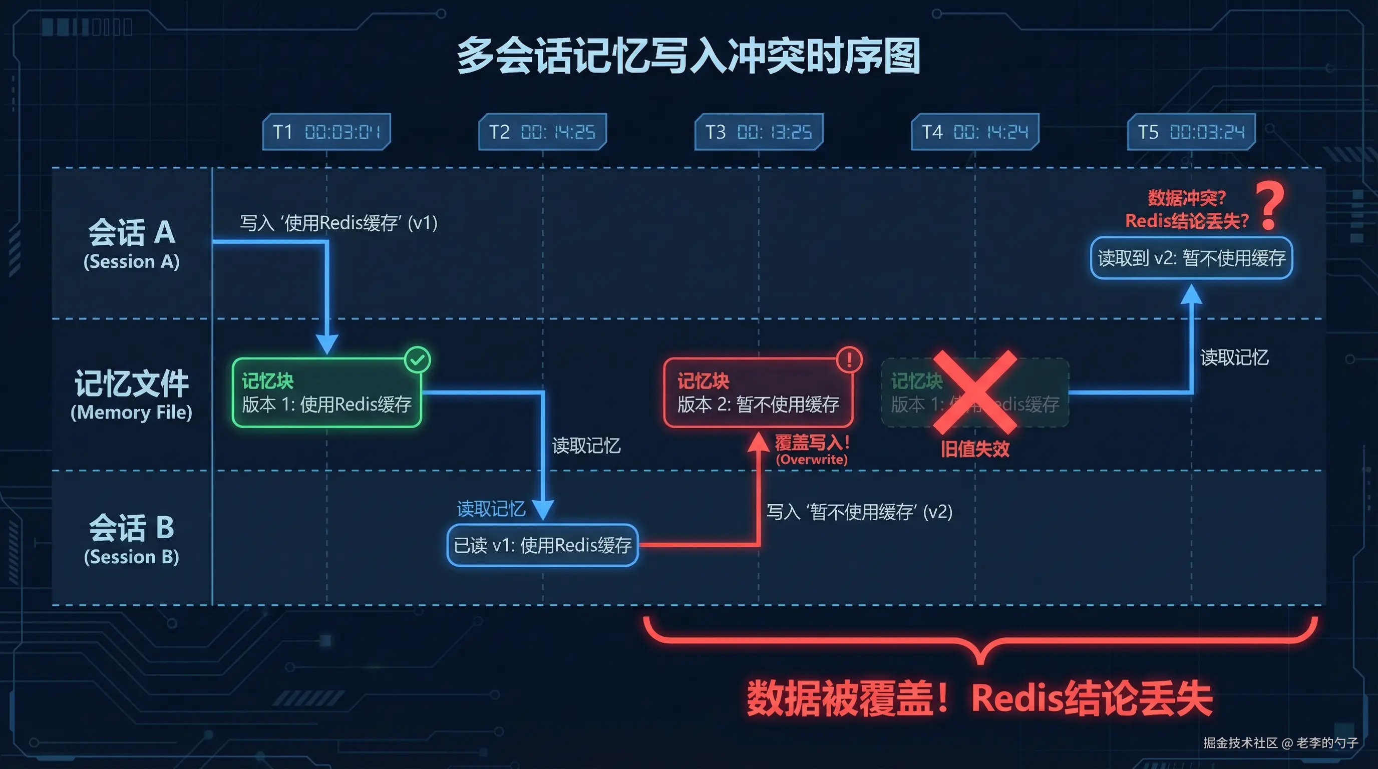 | 4 | 跨 Session | 多 session 后记忆被覆盖 | 记忆文件写入时间戳 | 版本号 + 冲突合并 |