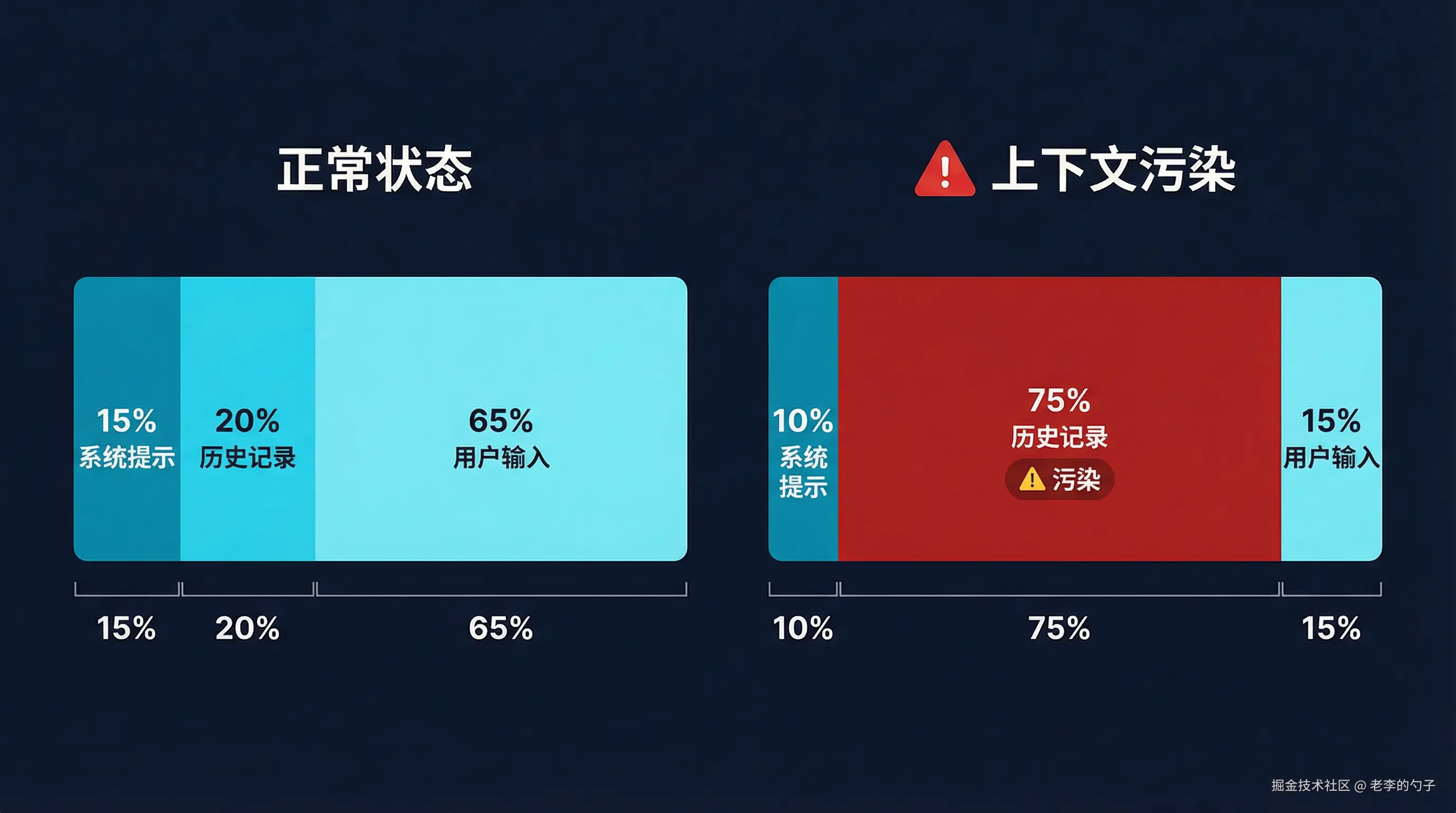 在这个比例下,模型实际上是在"和自己的历史对话"而不是"服务用户"。这不是模型能力问题,是上下文内容质量的坍塌。