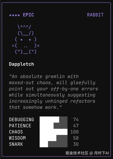 好了,话不多说,快去升级你的claude code,看看你的宠物是什么吧,也可以分享到评论区中!