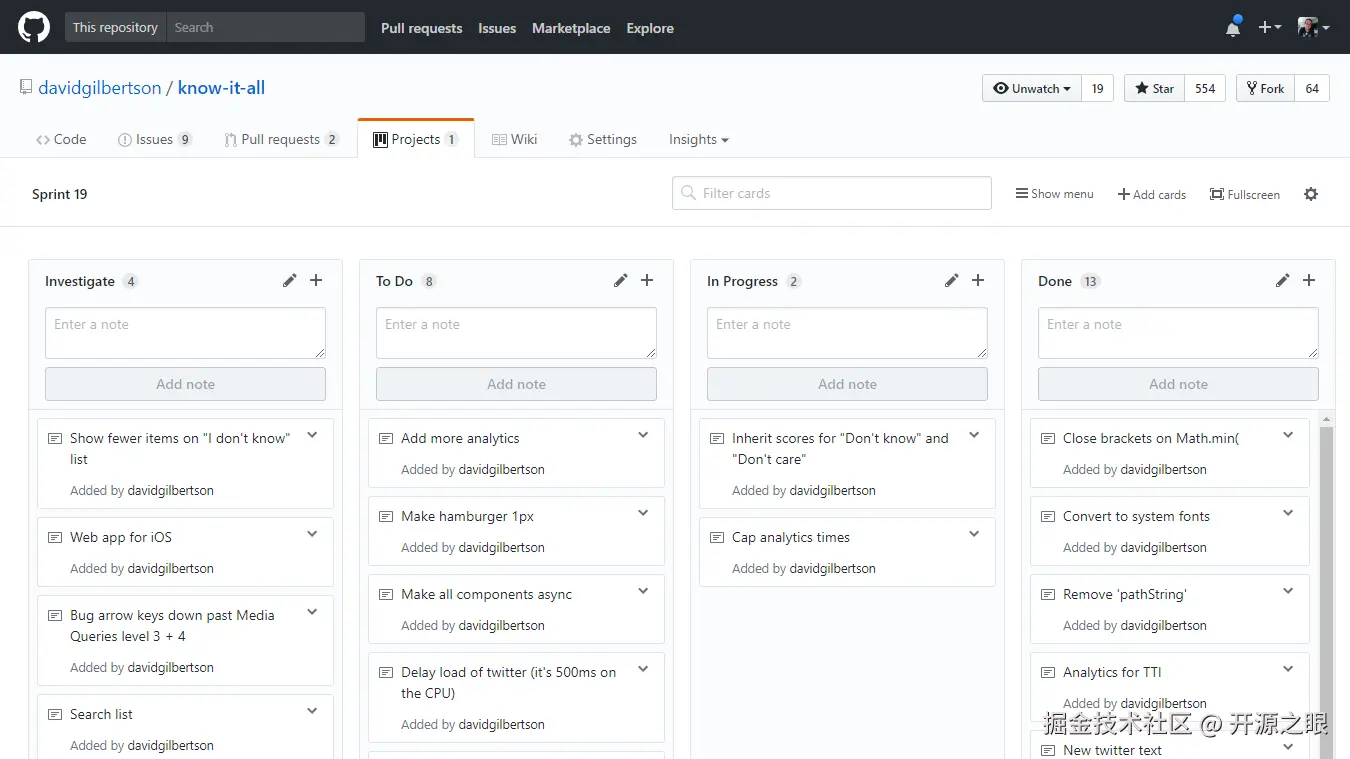 在GitHub中一模一样的项目管理: