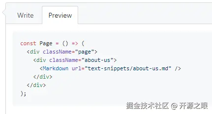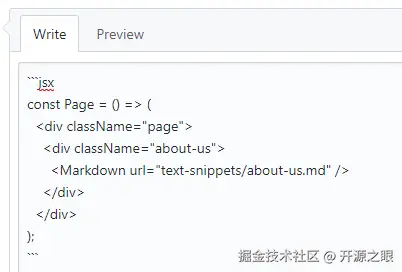 注意第一行的 ```jsx :