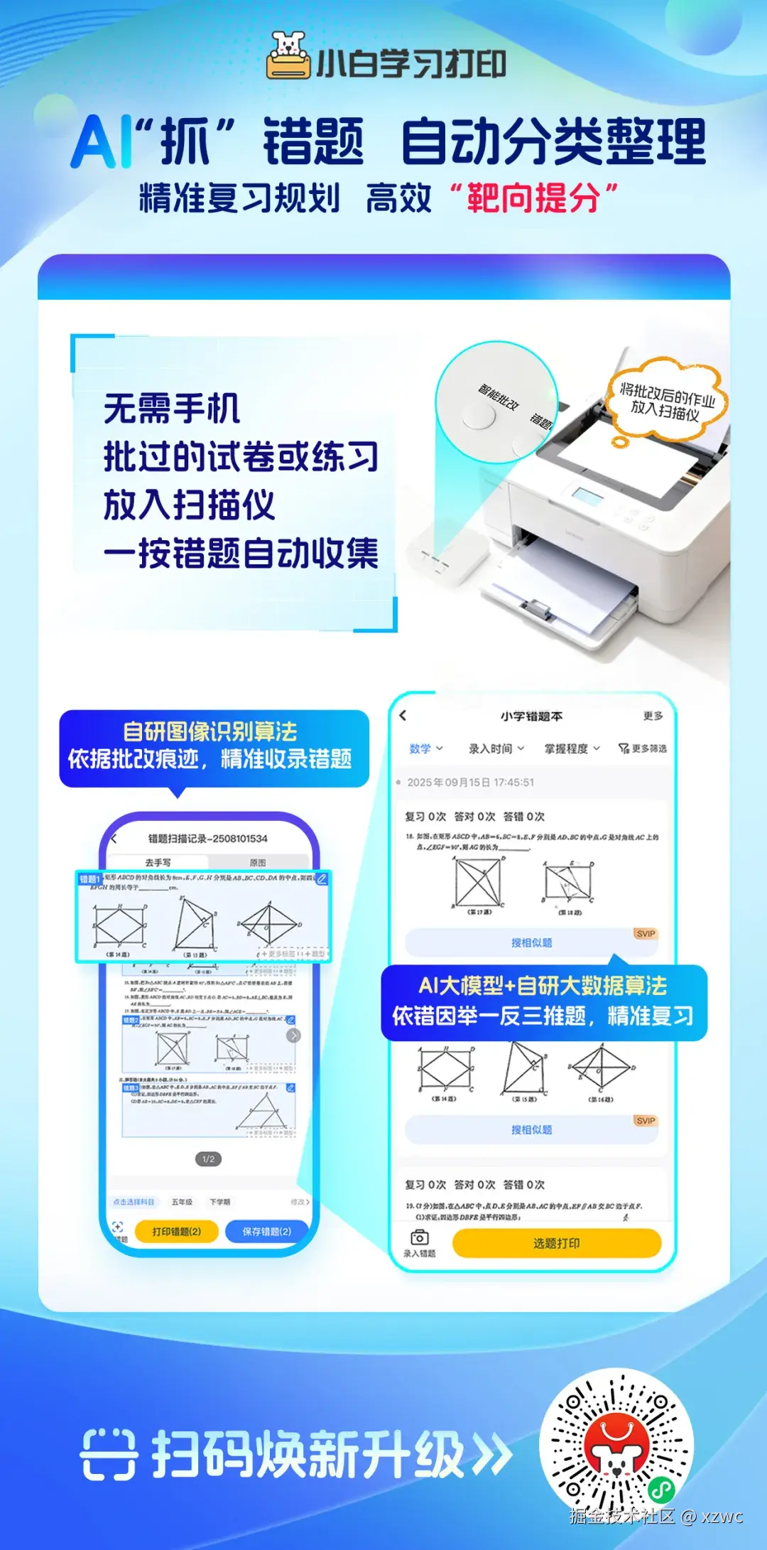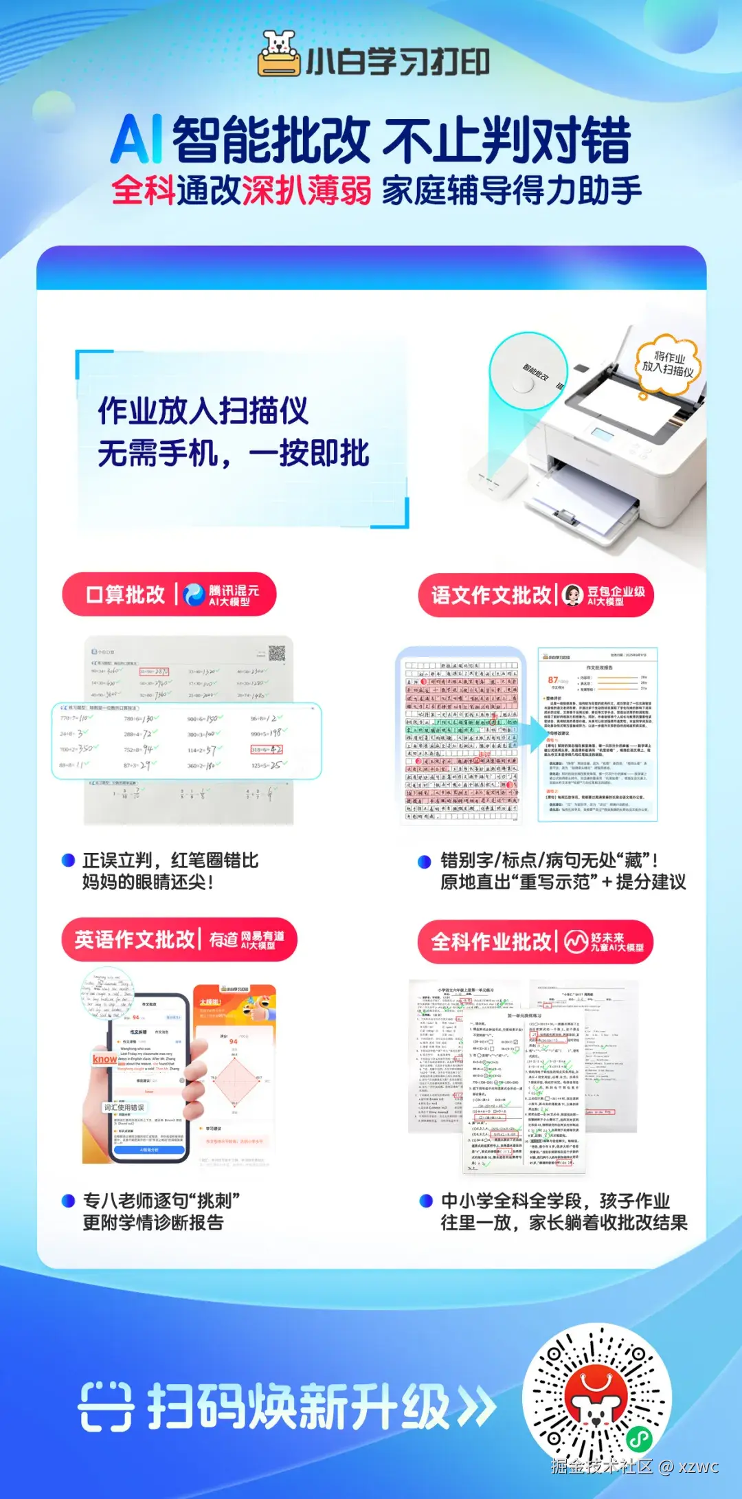 而且现在咱们有免费试用的活动,咱们就是可以免费把家里现有的普通打印机直接升级成集打印、扫描、批改、错题整理于一体的智能学习终端,真的特别划算,完全不用额外花大价钱买新设备。