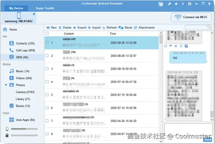 Coolmuster Android Assistant是一款功能强大、功能全面的桌面软件,旨在管理电脑上几乎所有类型的Android数据。对于想要在专业且井然有序的界面中备份、查看、打印或搜索短信的用户来说,它尤其实用。此方法适用于个人和企业用途。