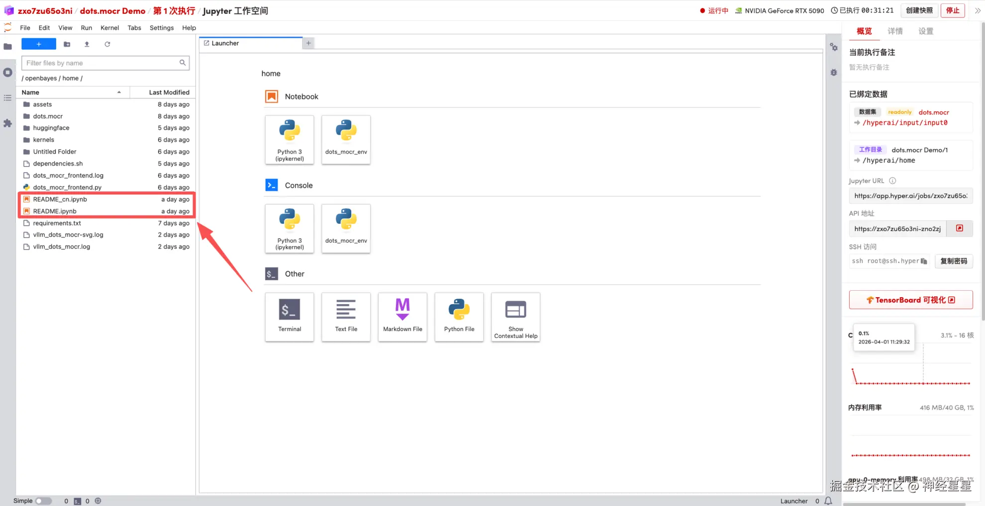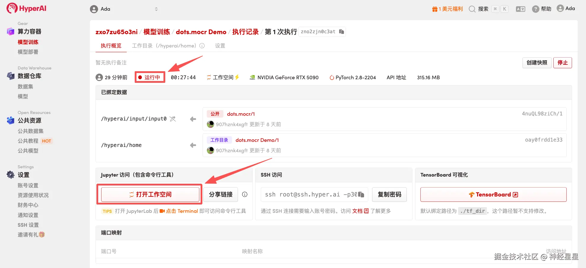 4.等待分配资源,当状态变为「Running(运行中)」后,点击「Open Workspace」进入 Jupyter Workspace。