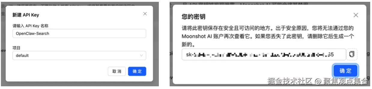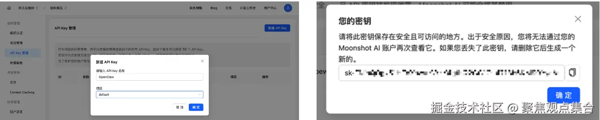 - 然后回到 Kimi 工作台,创建一个搜索专用的 API Key