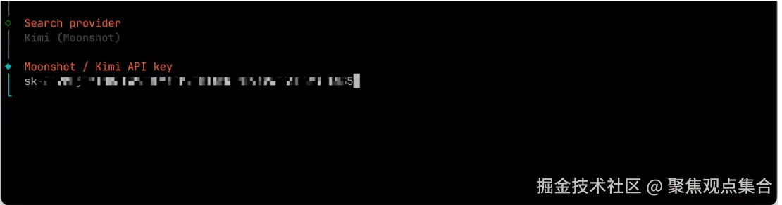 - 选择网络搜索提供商,选择 Kimi