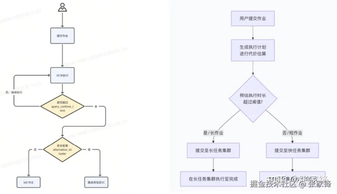 - 执行时长路由:设置一个阈值,比如60s,执行超过这个时间自动将作业路由到另一个VC