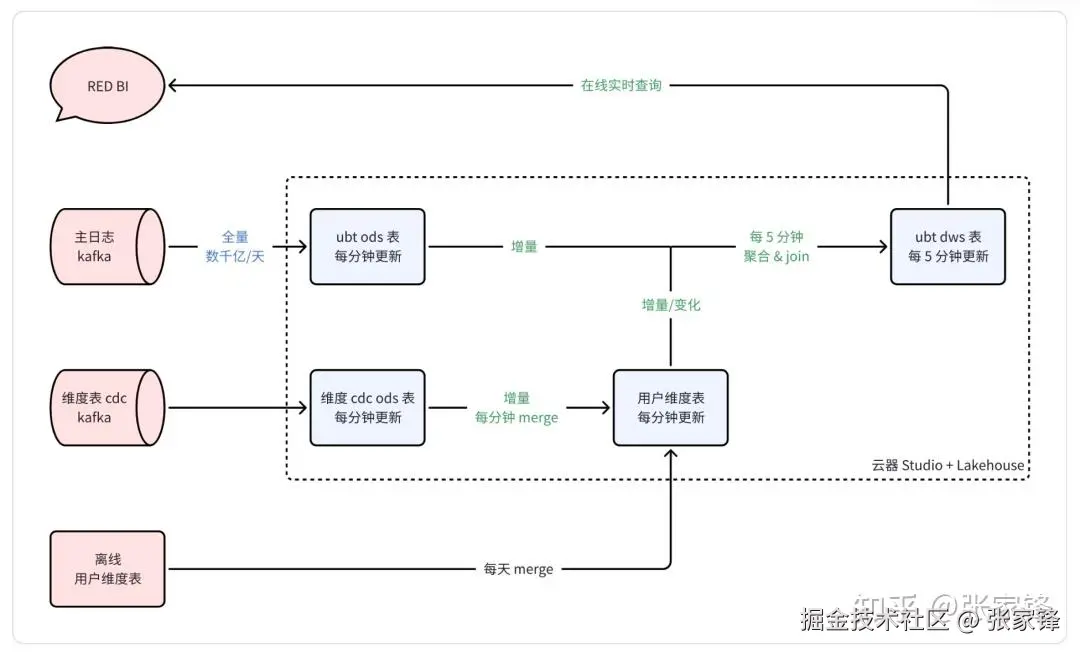 当前业务场景构造5分钟左右的近实时方案完全可以满足实验观测效果。相比于离线的天级数据,近实时数据能够很好的支持算法进行实时调参,又避免了实时数据开发复杂,资源损耗多的问题。同时,近实时方案可以灵活的根据业务需求变化调整数据延迟(数据新鲜度),根据需要调整数据的更新频率,以达到业务需求和成本的平衡。