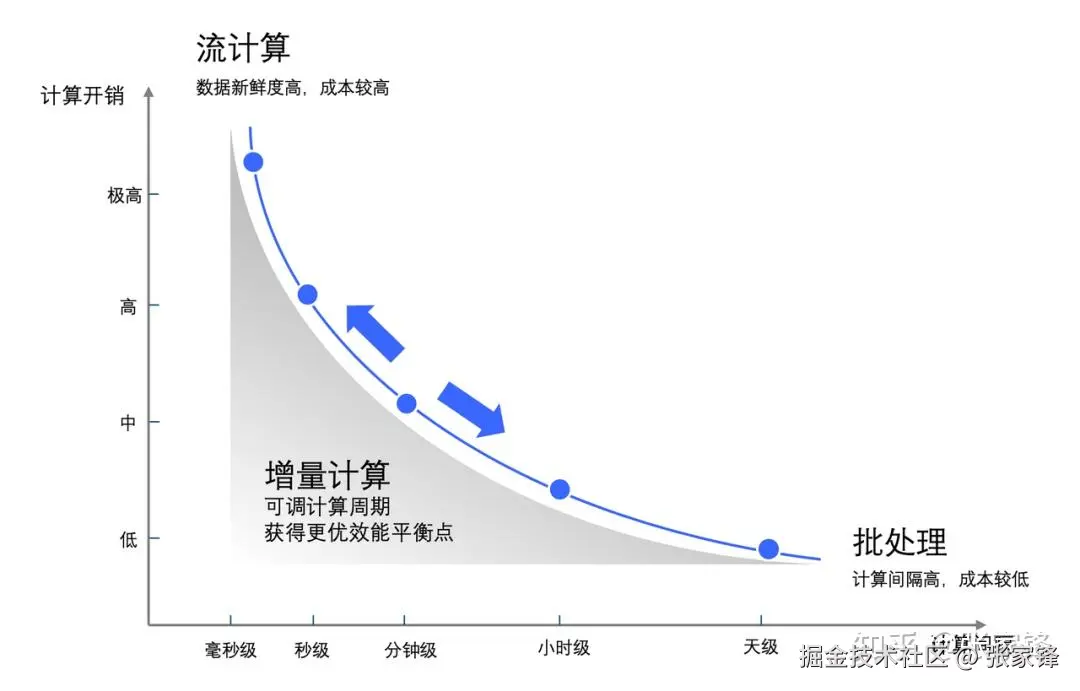 近年来,移动互联网用户的内容生态呈现出爆发式增长的趋势,一方面,用户规模持续扩张,覆盖人群不断拓宽;另一方面,用户使用频次显著提升,活跃度与日俱增,这种双重驱动效应导致系统日志规模呈指数级增长(日均千亿级日志)。与此同时,基于大数据的用户策略实验迭代的步伐持续加速,传统离线批处理模式已无法满足业务对分钟级甚至秒级时效性的需求。传统数据架构面临架构选择的难题:离线批处理虽成本低,但时效性也低,无法满足近实时看数/用数需求。实时计算延迟低,但需长期占用资源,运维复杂且成本高昂,通常只能小范围应用于关键链路或做数据采样处理。这些问题给增量计算带来了新的历史机遇。增量计算作为一种近实时的计算方式,通过动态处理增量数据,既避免了流计算的持续资源消耗,又将延迟压缩至分钟级,在统一计算模型下很好的平衡了成本与数据时效性。同时,增量计算支持灵活调整执行间隔,通过分散计算负载降低高峰期资源竞争风险,打破了流批界限,为用户提供了一种兼具经济性和时效性的新方案,"增量计算+近实时链路" 成为优化资源效率与数据价值转化的关键技术路径。