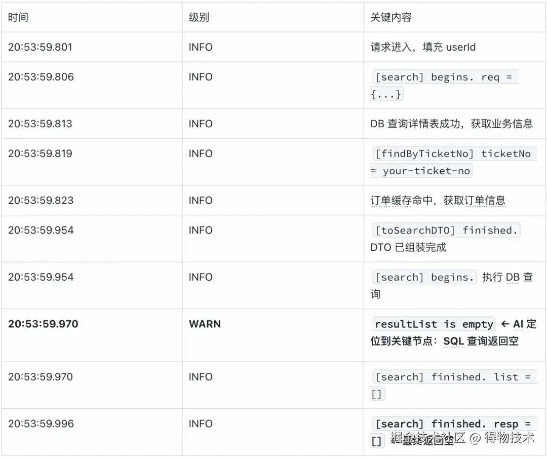 - 分页必须拉完:日志平台一次只返回部分数据,AI 会严格执行分页直到取完,确保不遗漏关键日志。