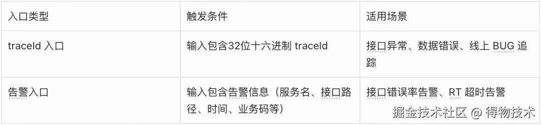 - {诉求描述}:包含 traceId 或告警信息的问题描述,用自然语言书写即可。