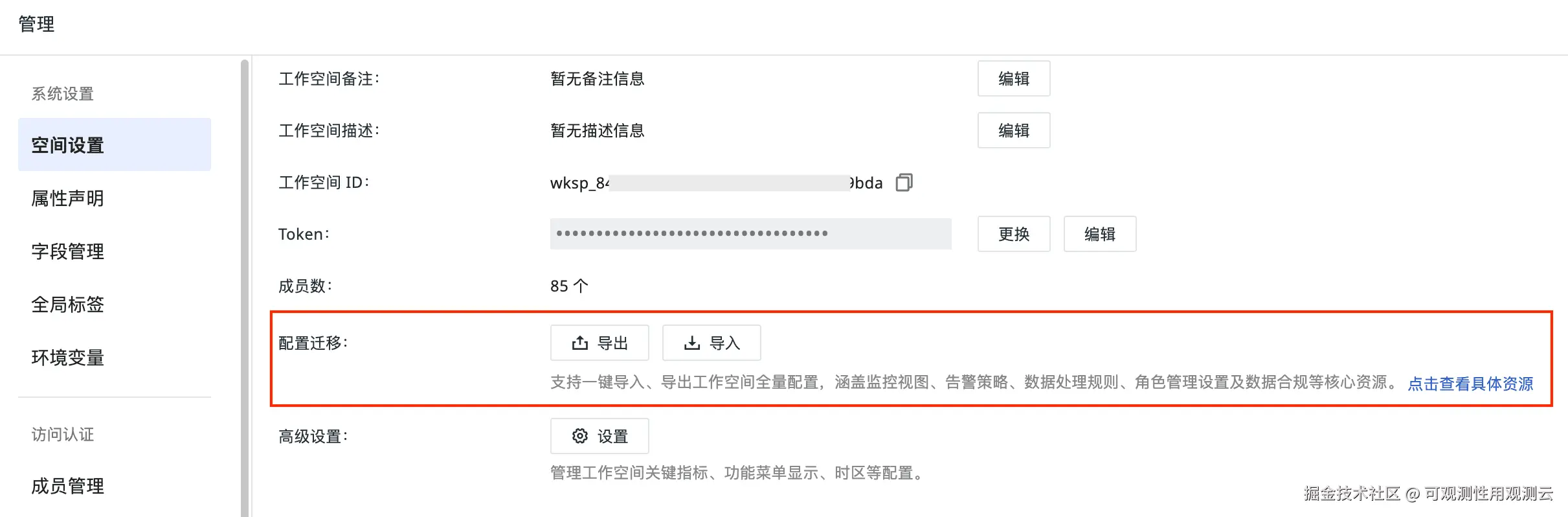 2、配置迁移:进一步支持一键导入、导出工作空间全量配置,涵盖监控视图、告警策略、数据处理规则、角色管理设置及数据合规等核心资源;