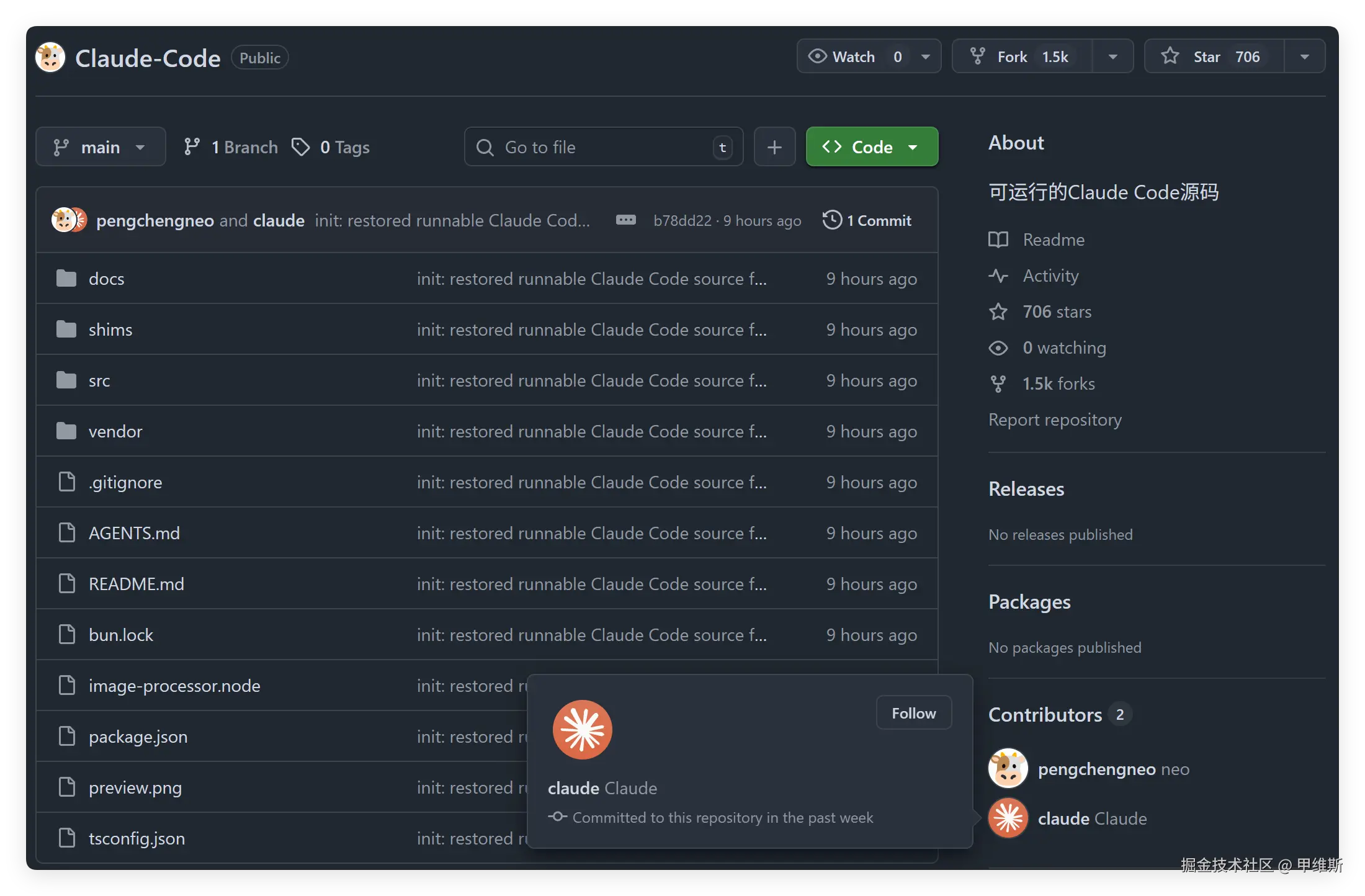 这里还有一个很好玩的,这个项目的其中一个贡献者叫 Claude!!!