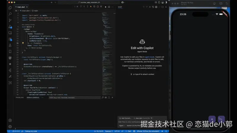 相信大家都感受到了 2026 的 AI 浪潮和冲击,如果说一个开源项目,或者说一个技术框架,在 2026 没能和 AI 沾边,那么能拥抱的资源肯定会越来越有限,而在这方面,实际上很多人可能还没直观感知到,不知不觉里 Flutter 已经完成了 “UI + Agent + Fullstack AI 一体化”路线支持。
