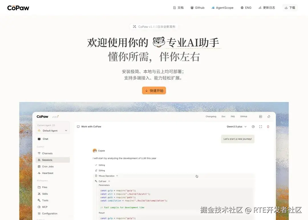 2、通义实验室发布 CoPaw 1.0:主打隐私安全的个人智能助理,实现 2B-9B 定制模型本地化运行