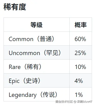 - UNCOMMON(不寻常) :略带个性,出现概率较低。