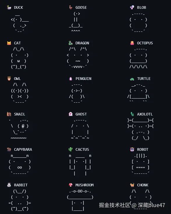 目前在 Claude Code宠物系统中,一共被挖掘出 18种不同的宠物物种。